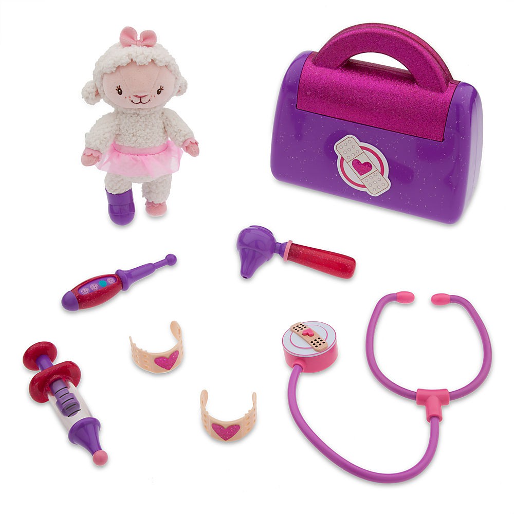 В комплект входят: Лэмми плюшевая игрушка , игра стетоскоп, отоскоп (ухо), шприц, термометр, 2 бинта и сумочка доктора